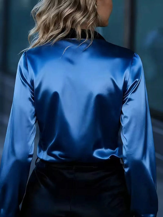V-Neck Long Sleeve Satin Blouse