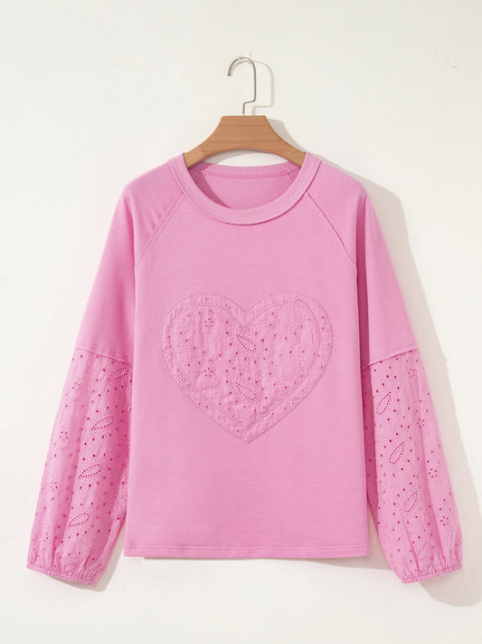 Heart Pattern Long Sleeve Patchwork Top